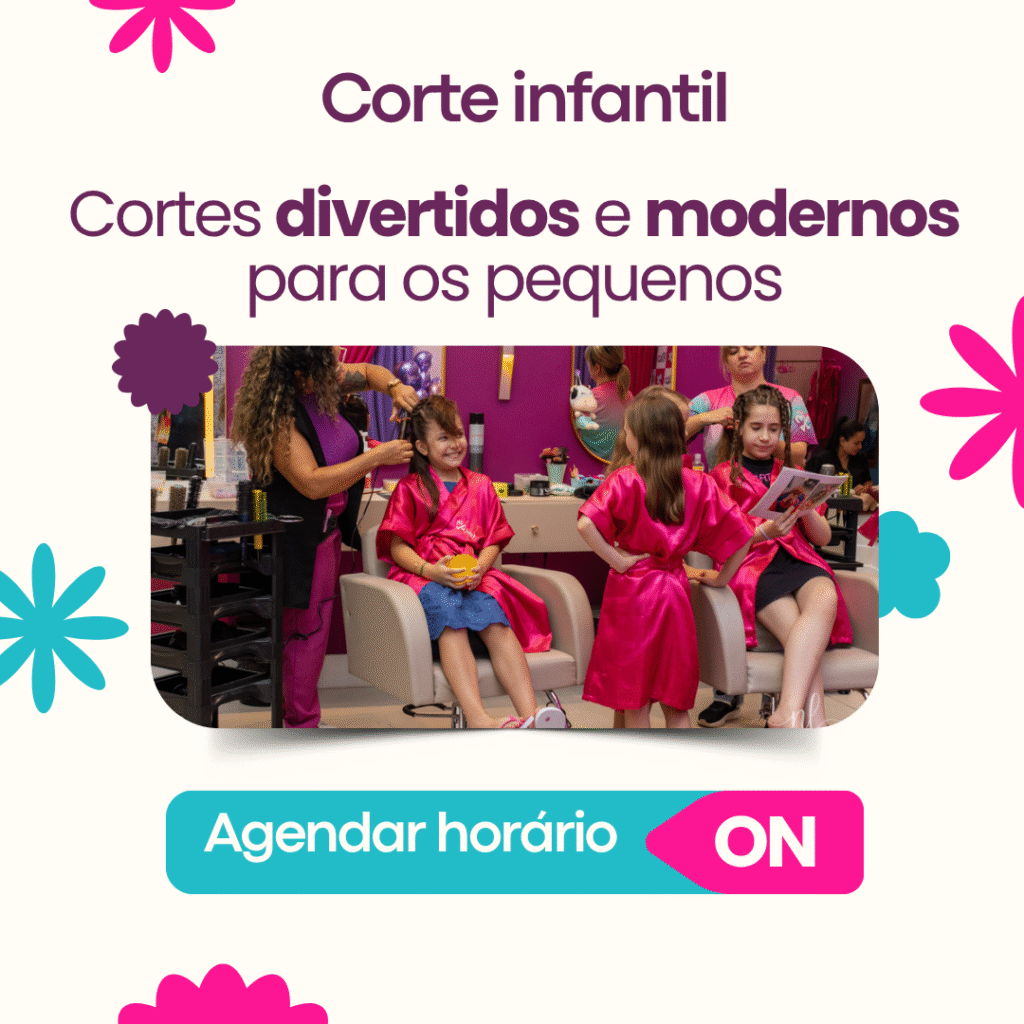Com um espaço colorido, lúdico e cheio de imaginação, as crianças brincam, se encantam e se sentem à vontade — enquanto pais e mães relaxam e também podem aproveitar nossos serviços de beleza para adultos.